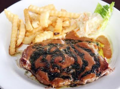 薄荷牛油牛扒(13令吉90仙)‧鮮美的牛扒淋上褐色的醬汁,與薄荷汁的味道很搭配,吃出豪邁的感覺來。